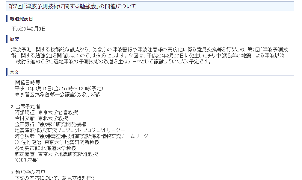 気象庁では次のような津波予測技術に関する勉強会が行われる予定でした。